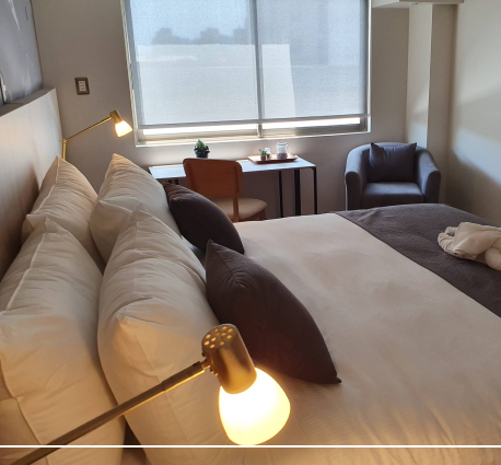 Nuestras habitaciones están diseñadas para su comodidad. Imagine ver su programa de televisión favorito o escuchar la mejor de su música en nuestras Smart TV desde su cama tamaño King, o tomar un baño relajante después de haber terminado de trabajar a tiempo gracias a su café y su Wifi de alta velocidad.
